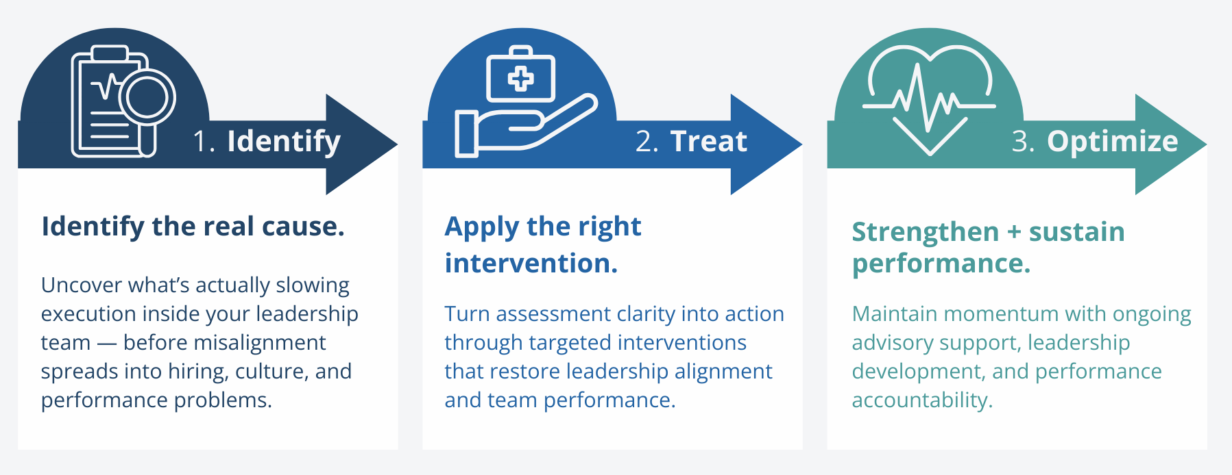 But once they’re identified clearly, leaders and their trusted advisors can address the real issues — and execution speeds up quickly.