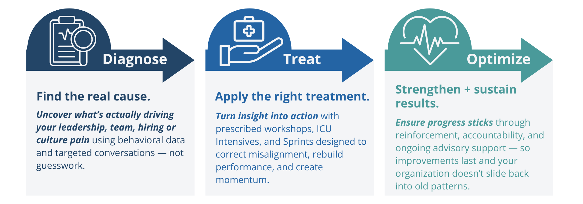 It comes from diagnosing the real issue, applying the right treatment, and reinforcing change until it holds. That’s the path I use to help leaders move from clarity to sustained impact.